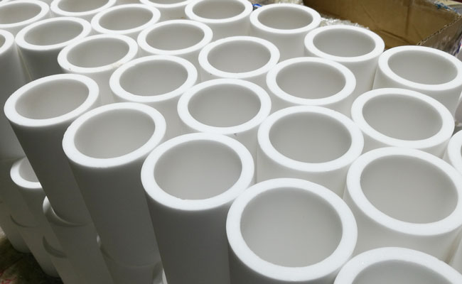 6、安裝:燒結(jié)完成的陶瓷經(jīng)檢驗合格后,通過膠粘貼片、點焊卡裝、內(nèi)襯陶瓷環(huán)等方式制作耐磨陶瓷管。